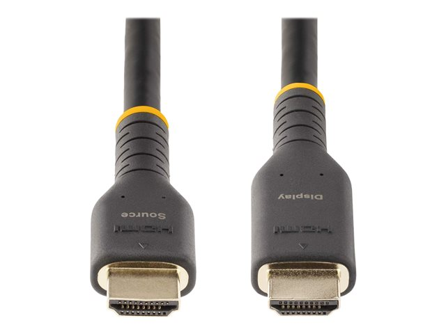 The cable features built-in amplifier circuitry, which actively boosts the HDMI signal, with no external power required. It is the perfect solution for longer transmissions without any signal loss. It features source and display labels on the connectors to ensure the display and source are properly connected.