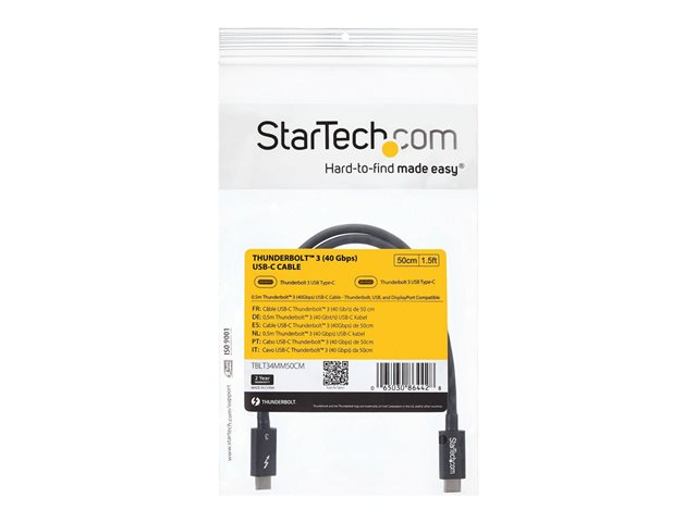 StarTech.com 2m (6.6ft) Thunderbolt 3 Cable, 20Gbps, 100W PD, 4K Video, Thunderbolt-Certified, Compatible w/ TB4/USB 3.2/DisplayPort
