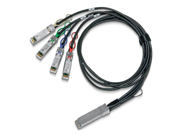 Denne kabelen er i samsvar med standardspesifikasjonene SFF-8402 SFP28 og SFF-8665 QSFP28 og gir tilkobling mellom systemenheter med en QSFP28-port på den ene siden og opptil fire forskjellige SFP28-porter på den andre. Kabelen kobler datasignaler fra hvert av de fire kobberparene på QSFP28-enden til det ene paret på hver av SFP28-endene. Hver QSFP28/SFP28-port inneholder en EEPROM med produktinformasjon som kan leses av vertssystemet.