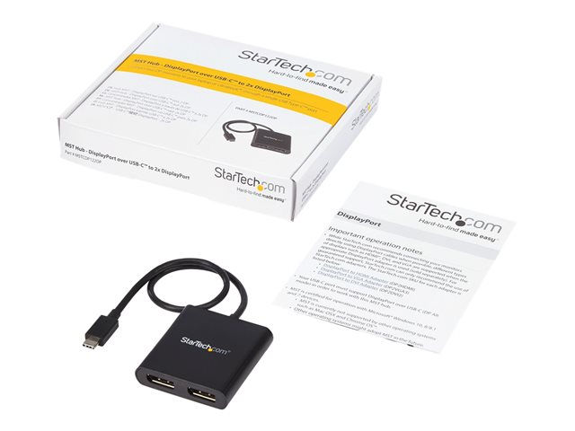 StarTech.com 2-Port Multi Monitor Adapter, USB-C to 2x DisplayPort 1.2 Video Splitter, USB Type-C to DP MST Hub, Dual 4K 30Hz or 1080p 60Hz, Compatible with Thunderbolt 3, Windows Only