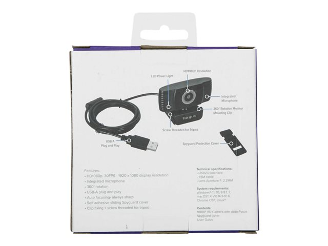 Compatible with most video conferencing software plus simple plug-and-play connection via USB, the Targus Webcam Plus is ideal for anyone looking to step up from the dark, low resolution video quality of typical laptop webcams.