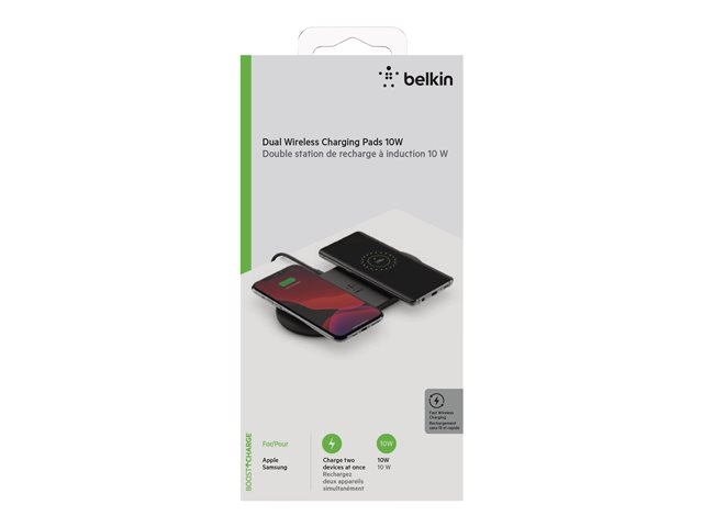 Prevent a bottleneck at your charging pad by doubling down. Take advantage of all the benefits of wireless charging technology, plus the convenience of charging two devices simultaneously. BOOST CHARGE Dual wireless charging pads free up counter or desk space. The non-slip grip design keeps your devices securely in place to ensure they keep charging, and LED lights indicate when they're charging correctly.