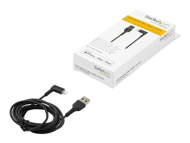 StarTech.com 6ft (2m) Durable USB A to Lightning Cable, Black 90° Right Angled Heavy Duty Rugged Aramid Fiber USB Type A to Lightning Charging/Sync Cord, Apple MFi Certified, iPhone 12 Pro