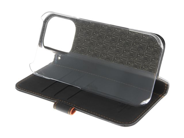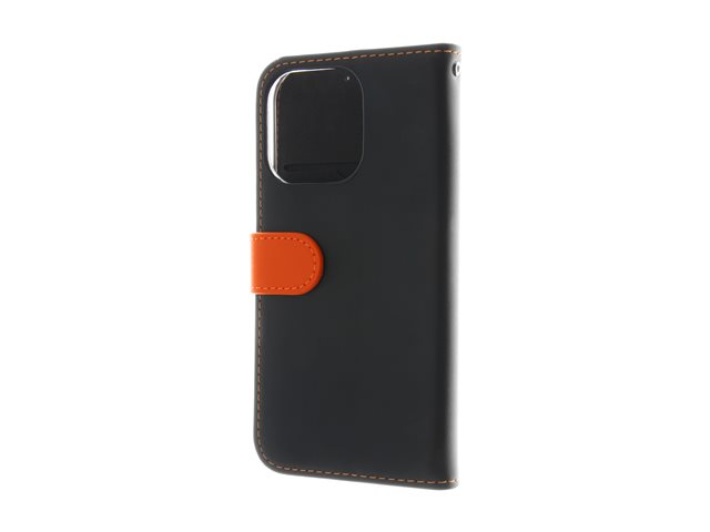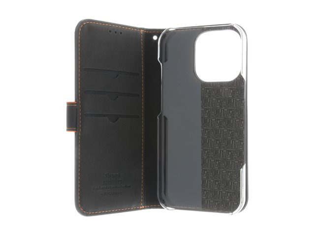 ekte skinn, kartong+papir+aluminiumsfolie, polykarbonat (PC), bomullssting - svart / oransje - for Apple iPhone 16 Pro