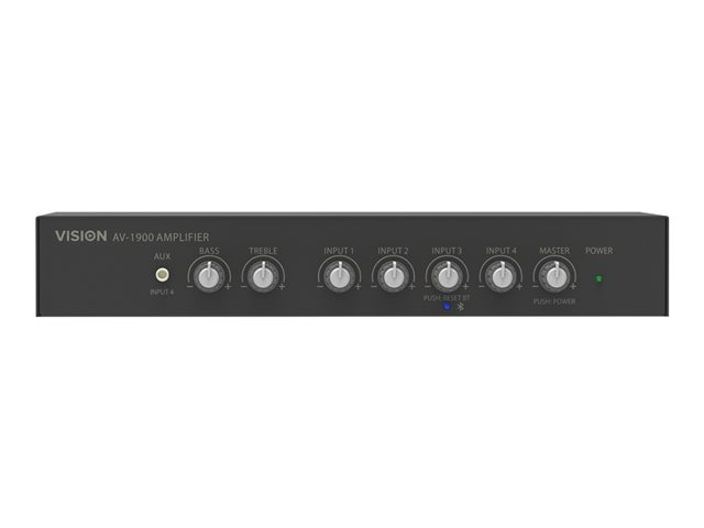The AV-1900 is a highly capable mixer-amplifier packed with useful features to make it as easy as possible to operate. It is designed for use in demanding applications like meeting spaces, small auditoriums, lecture theaters, school halls, and small churches. It has professional audio features normally only found in much more expensive mixer amps.