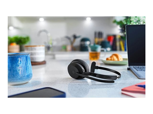 Hodesett - on-ear - Bluetooth - trådløs - aktiv støydemping - USB-A - svart - med ladestativ - Cisco Webex Certified, Alcatel-Lucent Certified, Avaya Certified, MFi Certified, Google Meet Certified, Amazon Chime Certified, Google Fast Pair Certified