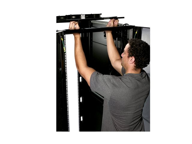 The APC Rack Fan Tray is a low cost solution that aids in heat removal from a Netshelter Enclosure. The system easily installs into the top of the enclosure and expels heat from the roof of the rack. The ACF504 fan tray promotes bottom to top airflow for a Netshelter SX enclosure in zero U of space. Cools by exhausting heat out of the roof of the rack.