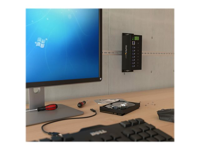 Metal Industrial USB-A Hub with ESD Protection & 350W Surge Protection - Din Rail, Wall or Desk Mountable - TAA Compliant USB Expander Hub (ST7300USBME) - Hub - 7 x SuperSpeed USB 3.0 - DIN-skinnemonterbar, veggmonterbar - DC-strøm - for P/N: ITB20D3250, USB312SAT3CB, USB315CB2M, USBLT1MWS, USBLT2MBR, USBLTM1MBK, USBLTM1MWH