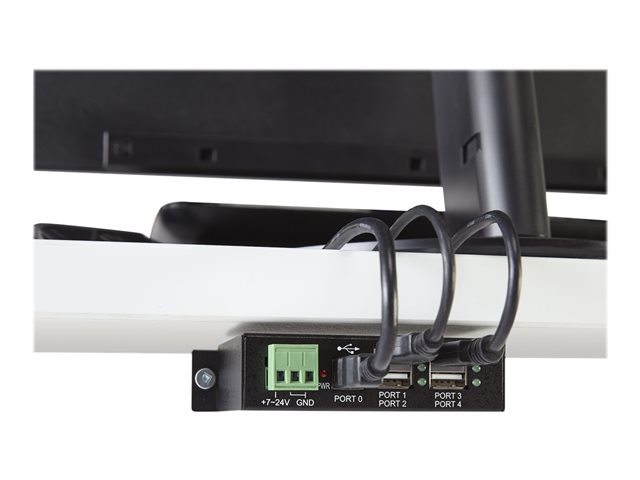 4 Port Rugged Industrial USB 2.0 Hub - Hub - 4 x USB 2.0 - DIN-skinnemonterbar - DC-strøm - for P/N: ITB20D3250, MSDREADU2OTG, USB2HAB15, USB2HAB30AC, USB2HAB50AC, USB2HABM1, USB2HABM6RA