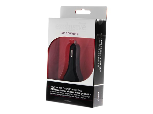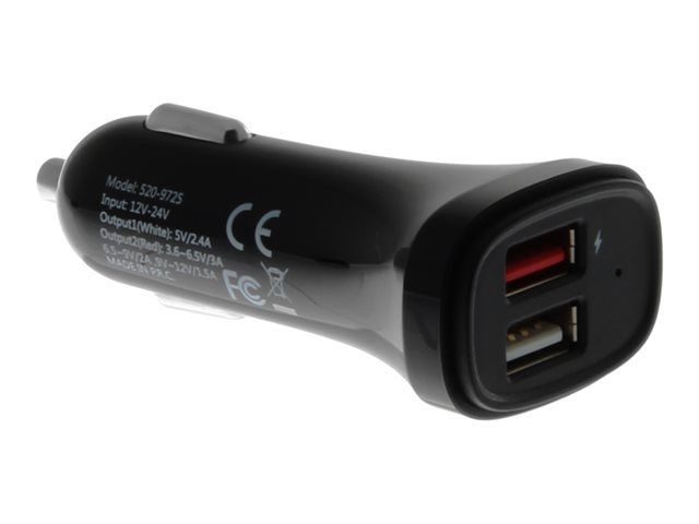 Bilstrømadapter - 30 watt - 3 A - QC 3.0 - 2 utgangskontakter (USB) - svart