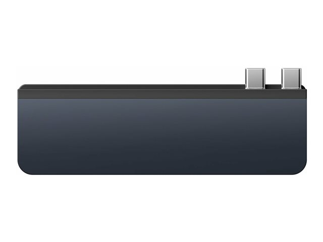 HyperDrive DUO PRO is a 7-port, form-fitting USB-C hub. This form-fit hub instantly provides Gigabit Ethernet, USB-A 5Gbps, USB-C 5Gbps, microSD 104 MB/s, and a 3.5 mm audio combo jack. It also features HDMI 4K 60Hz display support and a Thunderbolt 4. Additionally, the universal USB-C adapter provides compatibility with many devices and the extended USB-C connectors allow for compatibility with or without a protective case.