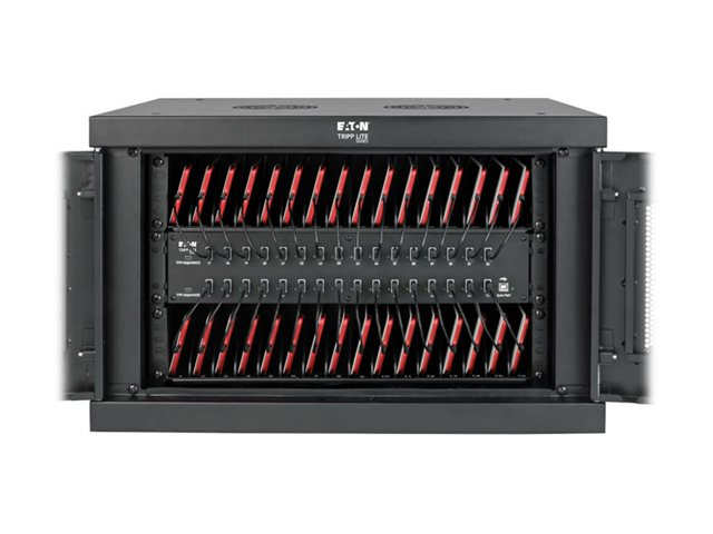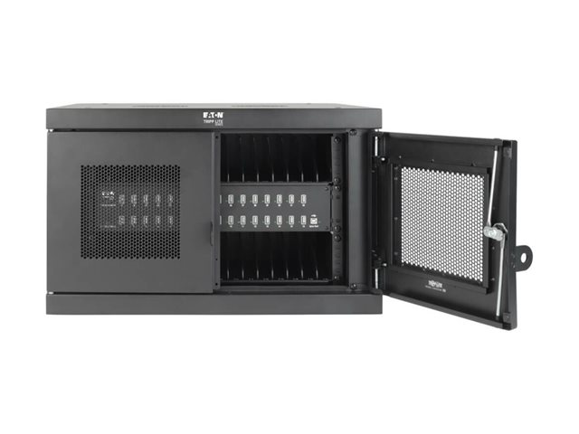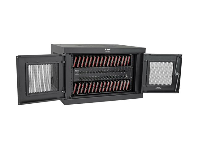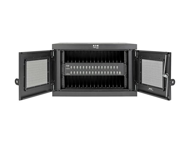Eaton Tripp Lite Series 32-Device USB Charging Station Cabinet with Sync for Smartphones, Wall Mount and Desktop Options, 230V, BS1363 to C13 Plug, Black