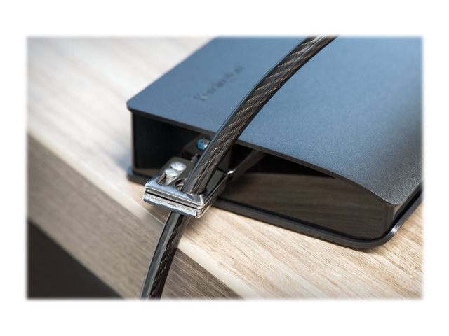 - 2.4m (8-foot) carbon steel cable is cut-resistant and anchors to desk, table or any fixed structure